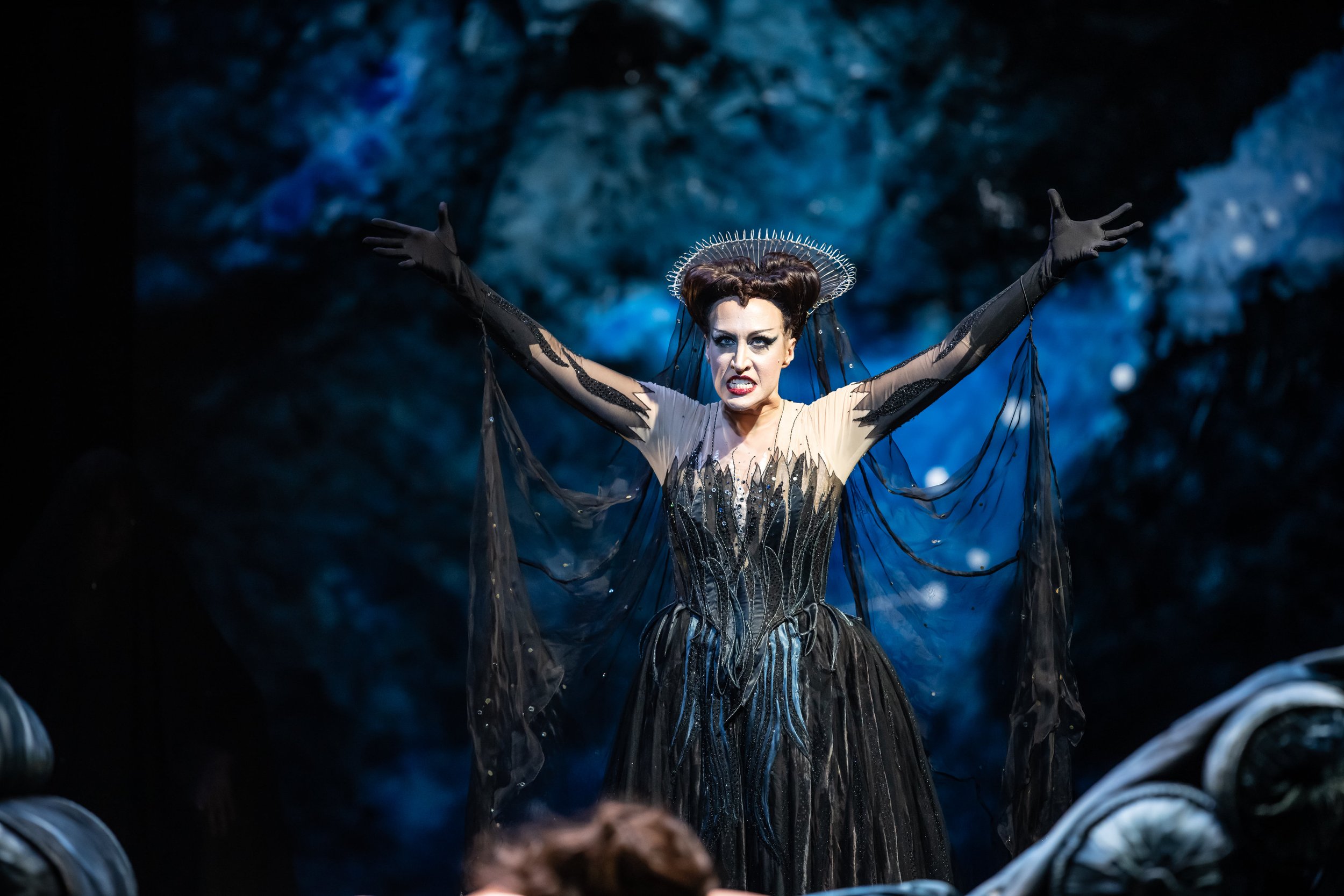 “Rae sings the trills and coloratura in the title role with great virtuosity as an expression of a bipolar personality whose narcissism leads to megalomania and ends in insanity.”